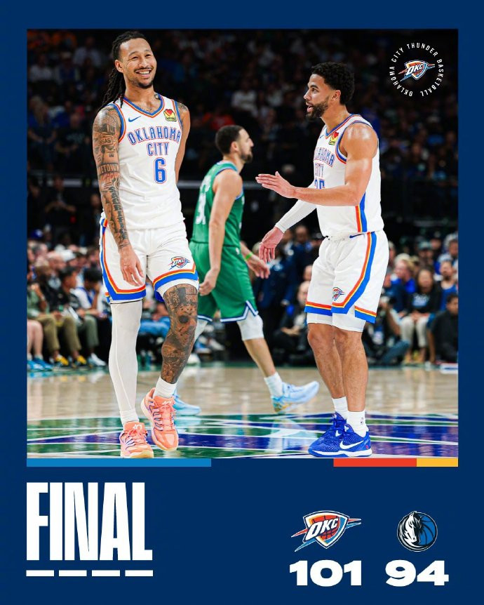 雷霆几乎全场比赛都处于领先,第四节初一度领先到22分,但是接下来进攻哑火,又被独行侠抹平分差,险些遭遇大逆转。好在雷霆最终还是稳住了局势,有惊无险地拿到了胜利。